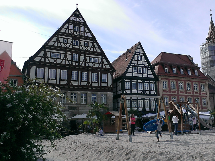 UK and Europe Roadtrip - Schwäbisch-GmündI love the half wooded houses around the playground at Schwäbisch-Gmünd. It seems they have trucked in loads of sand and palm trees that the kids are certainly enjoying. For 3 months each summer they they set up a summer playground in upper market square. Select the photo below to see more. Previous | Album | Next |