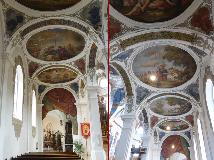 UK and Europe Roadtrip - BiberachThe inside of St Martins Church was renovated substantially in the mid 1700s and amazing frescoes were painted across the walls and ceilings. Biberach's Church has two clock faces that can each be seen from different parts of the church ie where the Catholics held their services and where the Lutheran's held theirs. Select the photo below to see more of the beautiful artwork and religious artifacts that have been preserved. Previous | Album | Next |