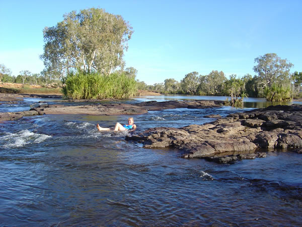 Back up from the falls you could cool off in the rapids. The trick of course was to not get washed down and over the falls. It looks easy here but the water was flowing pretty fast.