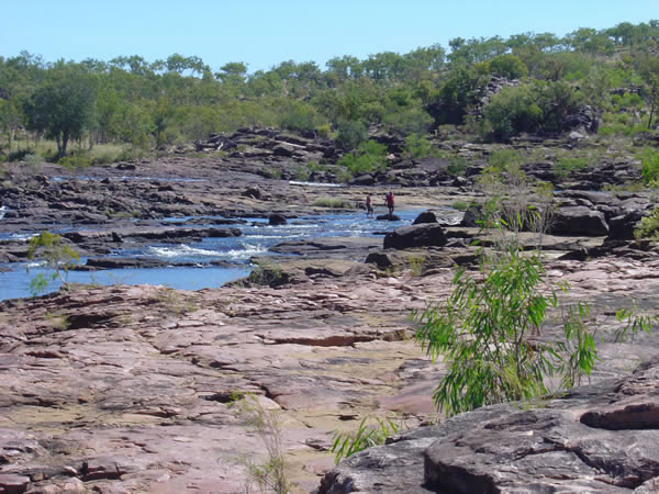Mitchell Plateau (Ngauwudu) National ParkGary & Karen thought there might be an easier way to get across so went exploring further up the river. They decided to cross up there. It wasn't as deep but quite fast flowing so still dangerous if you lost your footing. Previous | Album | Next |