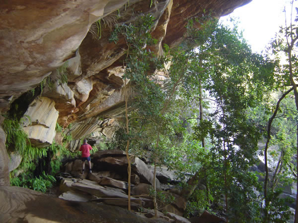 Mitchell Plateau (Ngauwudu) National ParkThe small track off to the left goes to the base of the Little Mertens Falls and then underneath the rock ledge that the water flows over. It is a very moist environment so many ferns and mosses grow here that aren't seen on the rest of the Mitchell Falls walk. Previous | Album | Next |