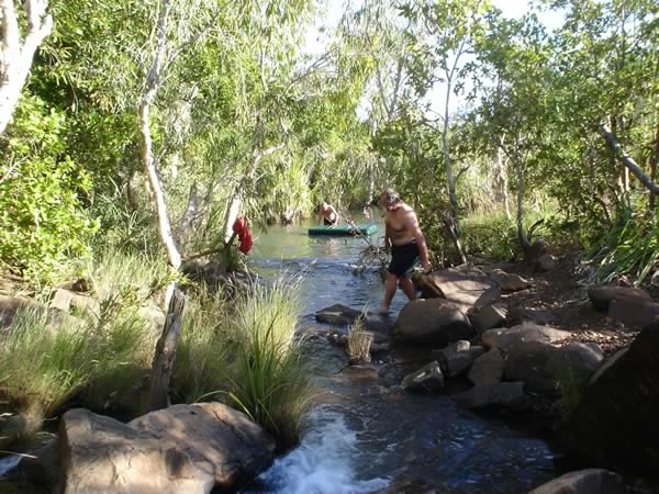 Mitchell Plateau (Ngauwudu) National ParkBack at camp, Gary tried to find the hole in the airbed by immersing it in the creek closest to the camp. We took the opportunity to have a swim at tis pool also as there were no showers and we didn't want to waste our drinking water on showers. It was pretty cool - 'refreshing' is the word I think people use when it is bloody cold but they are trying to tempt others to come in with them! Previous | Album | Next |