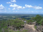 | There is plenty to see and do around the Glasshouse Mountains National Park and Beerburrum State Forest. This area is either side of the main highway between Brisbane and the Sunshine Coast. We stayed at Coochin Creek campground in the Beerburrum State Forest and canoed and fished Coochin Creek. We tried to paddle out to the Pumicestone Passage near Bribie Island from the camp but didn't quite make it. There are numerous walks in the nearby Glasshouse Mountains National park and we chose to walk up Mt Ngungun (one of the smallest peaks). Want to see Photos and Stories of other places in Australia? Use the Australia map to select another. |