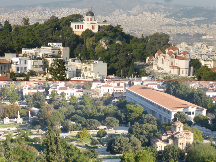 UK and Europe Roadtrip - AthensAs we descended from the Acropolis we had great views of The National Observatory of Athens, top left, the Church of St Marina, top right, and the Stoa of Attalos which is now the Museum of the Ancient Roman Agora, bottom photo. Select the photo below to see more. Previous | Album | Next |