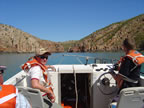 Album 27 - After Windjana Gorge, we camped close to Derby on the May River so we could be in Derby early next day for our flight to the Horizontal Falls in the Buccaneer Archipelago. We would take a seaplane to Talbot Bay then transfer to a catamaran for lunch before taking the jetboat ride through the Horizontal Falls. The flight back to Derby would cross some of the 800 or more small islands in the Buccaneer Archipelago. Missed the last web album? See Photos and Stories of Windjana Gorge or use the Australia map to select another. |
