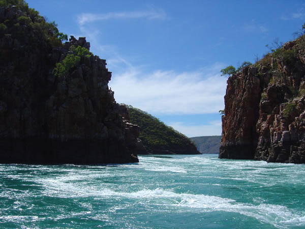 Horizontal Falls and DerbyThere are a number of whirlpools forming all around us as the water looks like it is in a washing machine. The colour is brilliant and so clear. Have a look at one of these whirlpools up close (SEE photo). Previous | Album | Next |