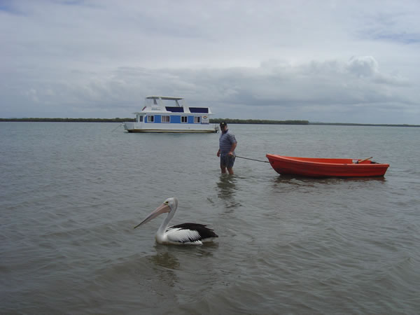 We dropped anchor and left the houseboat and headed to shore in the tender. There were quite a few pelicans on the west side of South Stradbroke Island.