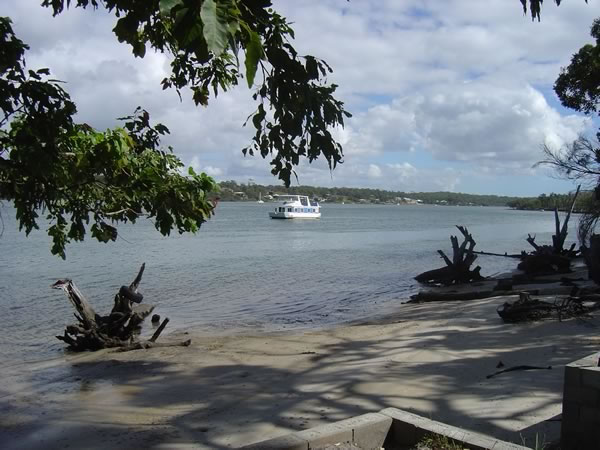Houseboat Holiday in Moreton Bay, QueenslandBetween Russell Island and Stradbroke Island we anchored in Canaipa Passage. The two islands are quite close here. We took the tender to the shore of Stradbroke Island again and went for a walk. Previous | Album | Next |