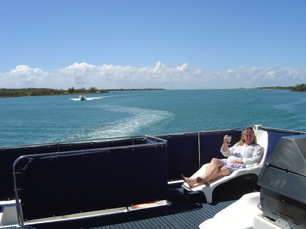 Houseboat Holiday in Moreton Bay, QueenslandIt cleared the next day and we had beautiful weather from then on. The top deck of the houseboat has a large covered area as well as an open part of the deck. There are plenty of waterways to explore... or just lie around and read a book.. Previous | Album | Next |