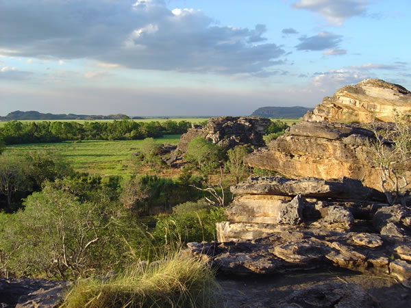 Kakadu World Heritage National ParkIt was nice to sit for a while and take it all in. This is looking to the north across the Nardab floodplain. We had heard the views at sunset were particularly good from here and that we might even see the elusive rock wallaby. Previous | Album | Next |