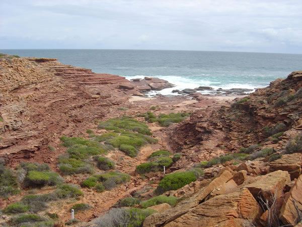 Kalbarri National Park and Coastal GorgesLeaving Kalbarri we decided to head south via the scenic coastal drive through another section of Kalbarri National Park. Our first stop was Mushroom Rock. You walk down into the coastal gorge and Mushroom Rock becomes more obvious as you get closer to it. Can you see which one it is? Previous | Album | Next |