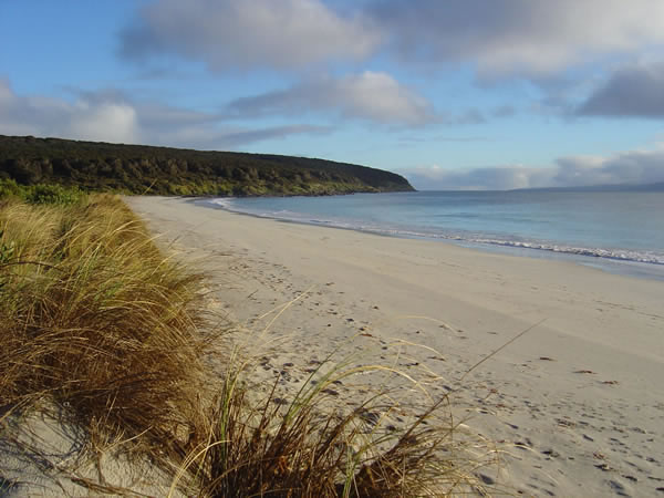 Kangaroo Island, South AustraliaThe ferry trip only took 45 minutes so we arrived just after breakfast and headed off from Penneshaw to Cape Willoughby. We stopped in to have a look at the camp ground at Antechamber Bay and a quick walk up the beach. You could easily see the mainland across Backstairs Passage. Previous | Album | Next |