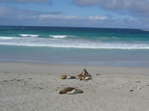 Kangaroo Island, South AustraliaThe world population of the Australian Sea-lion is about 12,000. Of these 8,500 occur in South Australia and 3,500 in Western Australia. They are one of the rarest seal species in the world. One of the baby seals was particularly playful wanting us to toss the seaweed with him. Previous | Album | Next |