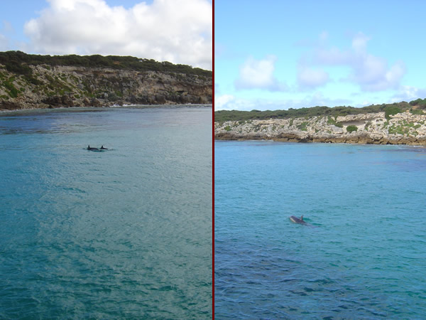 Kangaroo Island, South AustraliaVivonne Bay is the only safe harbour on the south coast of Kangaroo Island. We were impressed by its beautiful turquoise waters and were lucky enough to see two dolphins racing each other out to the point. Previous | Album | Next |