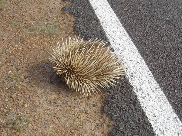 Kangaroo Island, South AustraliaWe drove out the Point Ellen and watched the waves crashing over the rocks. From there we looked across Vivonne Bay back towards Nobby Island near Seal Bay. As we left Vivonne Bay we stopped to let an echidna cross the road. Previous | Album | Next |