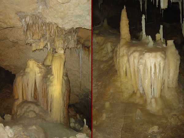 Kangaroo Island, South AustraliaThe story goes that a stockmen and his horse 'Kate Kelly' fell into a sinkhole or through a collapsed roof of a cave in 1885. The horse died. A group of islanders went searching for proof of this story in 1925 and found Kelly's Hill to be honeycombed with caves many with beautiful cave decorations. Previous | Album | Next |