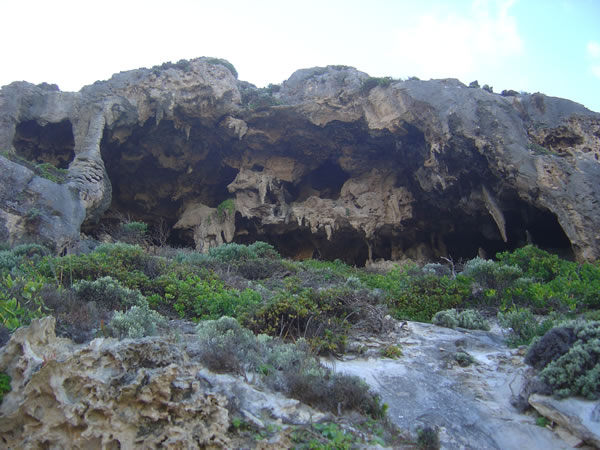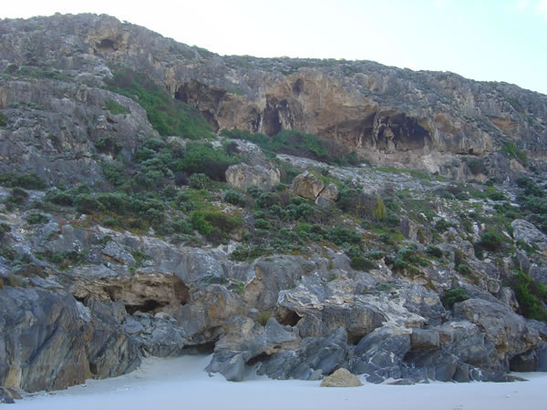 Kangaroo Island, South AustraliaIt was quite a narrow inlet so you could see how the waves from this wild ocean could catch you out if you weren't paying attention. The river cascaded over small waterfalls onto the beach. Have a look at the caves in the cliffs up closer. Previous | Album | Next |