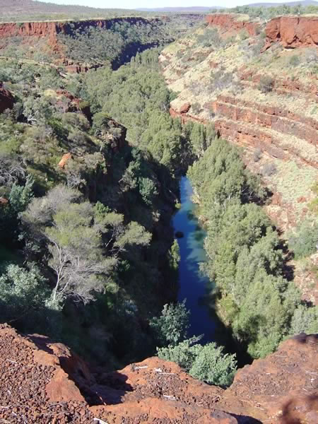 Karijini National Park , Hamersley RangesAs you walk along the rim of Dale Gorge you get a look at where you have just walked. Spectacular! Have a look at some of the wildflowers we saw along this trail. Only a fraction of Dales Gorge is accessible to the average walker but what you get to see is truly worth it. Previous | Album | Next |