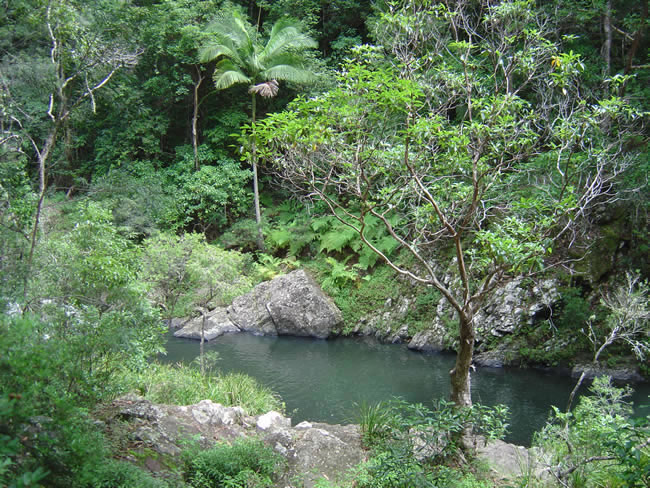 Conondale National Park - Booloumba Creek, QueenslandBooloumba Falls Walk is a 3km return walk to cascades, waterfalls, rock pools and The Breadknife rock formation. This track along Booloumba Creek had a number of places where you could cool down in cascading creeks and swimming holes. Very inviting on a hot day! Previous | Album | Next |