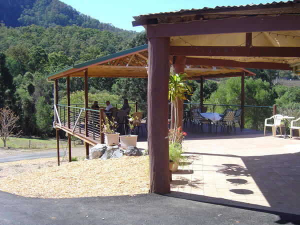 Upper Mary River area - Kenilworth Bluff Winery, QueenslandThe Sunshine Coast wine region includes vineyards situated high up in the cooler climate Blackall Range, Kenilworth and Traveston areas through to the milder climates in the valleys near the coast. We enjoyed both the wines and the view at the Kenilworth Bluff Winery. It is the Sunshine Coast's first established vineyard, in 1993, and is currently planted with Shiraz, Cabernet Sauvignon, Merlot, Semillon and Chardonnay grape vines. Previous | Album | Next |