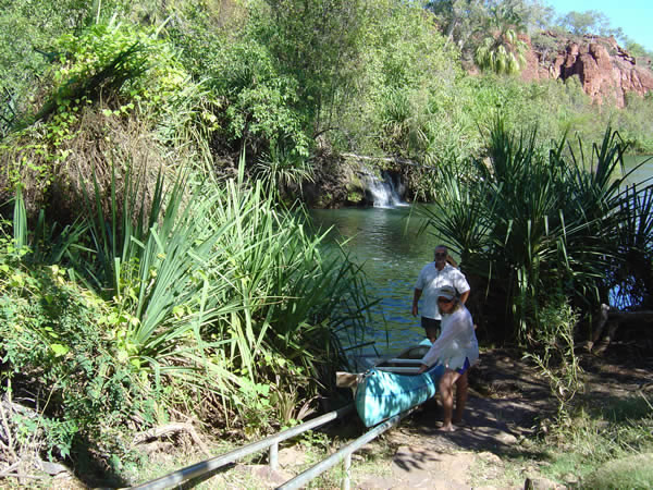 Lawn Hill Gorge, Boodjamilla National ParkNext day we decided to canoe the upper gorge. There is a canoe portage area which you can drag the canoe up and carry it a short distance around to the launching platform into the next level. Previous | Album | Next |