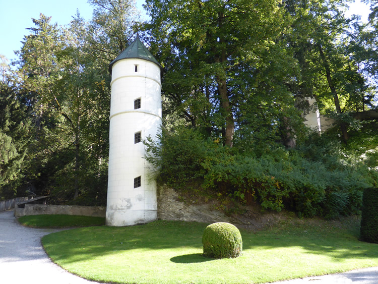 UK and Europe Roadtrip - Schloss AmbrassThe castle grounds are quite extensive. They include cliffs, ravines, bridges, and a waterfall. I am not sure what this tower is for? We found our way to the Bacchus Grotto. In the 1500s artificial grottoes were very popular! Select the photo below to see inside the grotto. Previous | Album | Next |