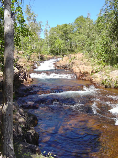 Litchfield National Park, Northern TerritoryThere are many waterfalls hat cascade down from the Tabletop Range which is a sandstone ridge that runs through Litchfield park. This is Buley Rockhole which has a camp ground nearby with limited facilities. Previous | Album | Next |