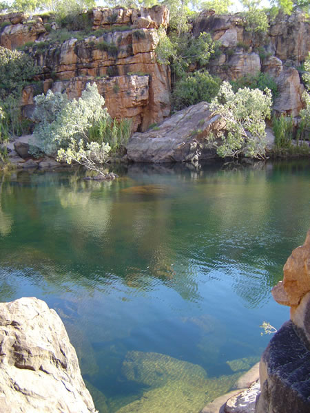 Manning and Galvans Gorges, Gibb River RoadThe water was crystal clear and very inviting. You could see the fish but they were not interested in being caught apparently. After climbing over and around the rocks we headed back up the track. Previous | Album | Next |