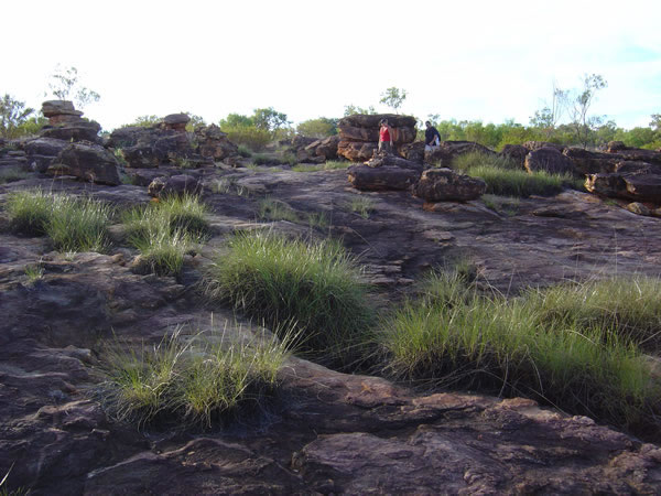 Manning and Galvans Gorges, Gibb River RoadThe walking track is marked with small rock cairns which they set up after each wet season. Signs would just wash away so this is a cheaper alternative and there are no shortage of rocks around here. Karen is just walking past a cairn. Have a look at the flowers we saw on the walk. Previous | Album | Next |