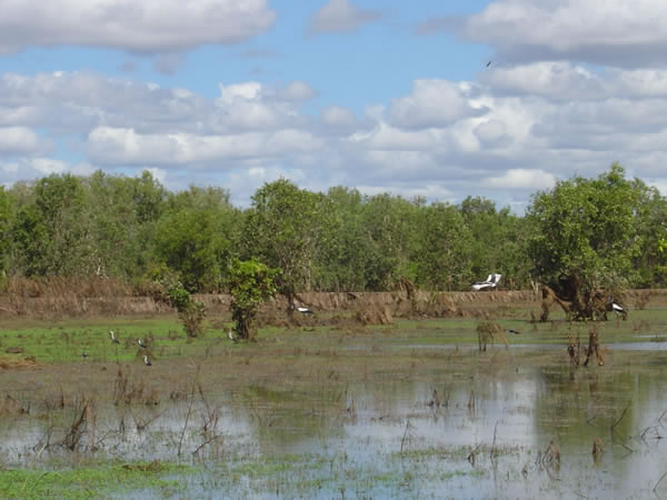 Mary River Boat Hire, Northern Territory WetlandsThere were all sorts of birds - jabiru, heron, eagles, hawks, egrets, magpie geese and the list goes on... You can see debris everywhere left over from the wet season with lots of plants that had died off coming back again. Previous | Album | Next |