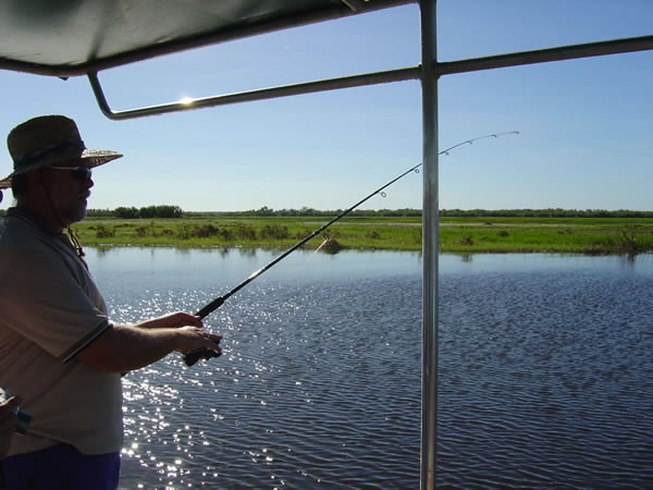 Mary River Boat Hire, Northern Territory WetlandsPete was very keen to catch another barramundi but it wasn't to be. It was still fun trying though and what better outlook than this? It was nice to just sit and take it all in. Spotting crocs became an interesting game. Previous | Album | Next |