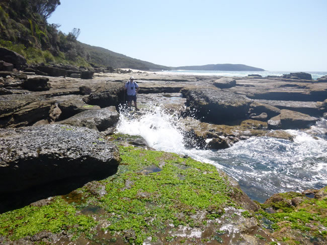 Melbourne to Brisbane RoadtripThe walk travels along the edge of the beach under the forest canopy for most of the way so that is a bit shadier and cooler. Towards the end you need to go off the defined path onto the beach and rocky platforms. Make sure you take note where you left the path. Someone will probably already have piled some rocks into a recognisable stack but check for yourself! Previous | Album | Next |
