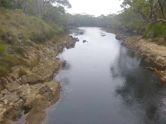 Brisbane to Melbourne RoadtripThis is the view from the bridge of Yeerung Gorge downstream. If you don't have a canoe, a good way to explore this area is by walking along the Estuary View Trail (1.5 km, 1 hour return). The track also allows access to the coastline east of the river when the entrance is breached. Previous | Album | Next |