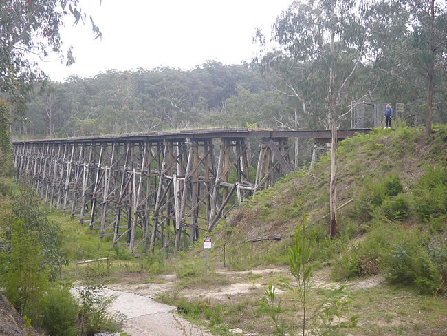 Brisbane to Melbourne RoadtripThe walking trail used to continue across the old Stoney Creek Trestle Rail Bridge but it is too dangerous now so is closed. The track now runs along beside it. That is me walking up to the "Closed" sign just to check! Previous | Album | Next |