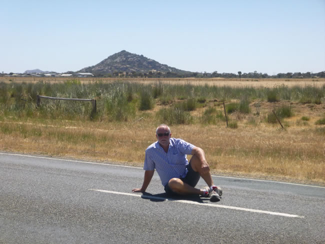Brisbane to Melbourne RoadtripWithout a metal detector there wasn't much to do at Whipstick State Park so we continued north through the flat dry countryside passing irrigated farmlands then stopped for supplies at Pyramid Hill. You can see where it got its name! Previous | Album | Next |