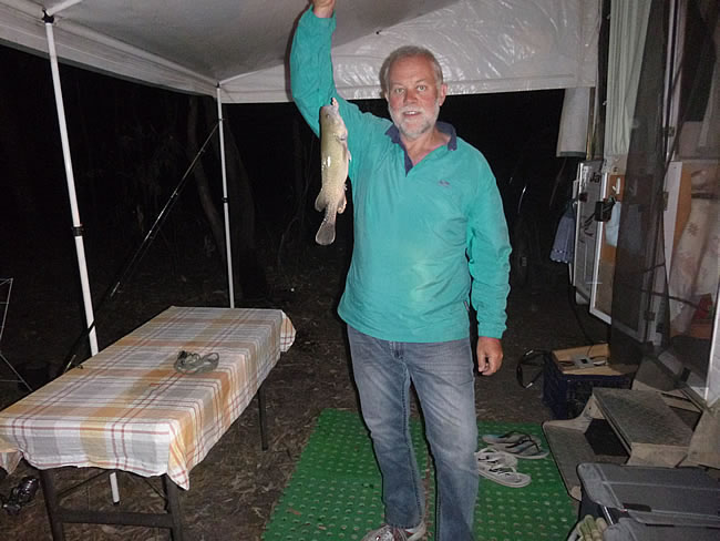 Brisbane to Melbourne RoadtripI didn't catch any fish but Pete finally caught a Murray Cod! It wasn't massive but will do for the two of us. The catching is fun, but photo over, now it is time for the cleaning and filleting... Previous | Album | Next |