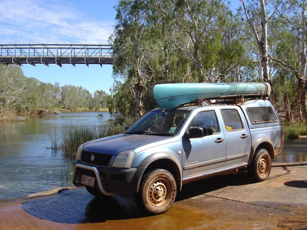 Millstream Chichester National ParkWe drove down to the causeway across the Fortescue river to put the canoe in. The water pipeline see here takes water to the coastal towns from this important water reserve. The Fortescue Catchment receives the highest average rainfall in the Pilbarra. Previous | Album | Next |