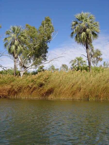 Millstream Chichester National ParkThe Millstream Palm is native to the area and unique to the Pilbara Region. The fruit has a thick brown fleshy skin, which is edible and popular with the Yinjibarndi Aboriginal people from the Millstream area. Previous | Album | Next |