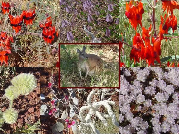 Millstream Chichester National ParkThere were plenty of wildfowers throughout the park and a very cute red kangaroo at Millstream Homestead that posed for his photo. The desert pea came in a variety of 'eye' colours - red, black, pink. Previous | Album | Next |