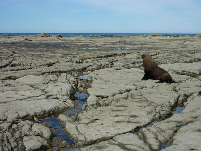 South Island New ZealandWe visited Kaikora Seal Colony at Point Kean and wandered along the Peninsula Walkway. You can park right next to the colony and the seals are obviously very used to people. Select the photo to see another seal up close. On our way back from the point we stopped at the coffee van for lunch and had a special New Zealand favourite - whitebait fritters. They were great! We also tried paua patties and crayfish patties which were unusual but quite yummy too. One thing we missed just north of here which we only found out about later was Saw-cut Gorge Walk. Maybe one for next time! Previous | Album | Next |