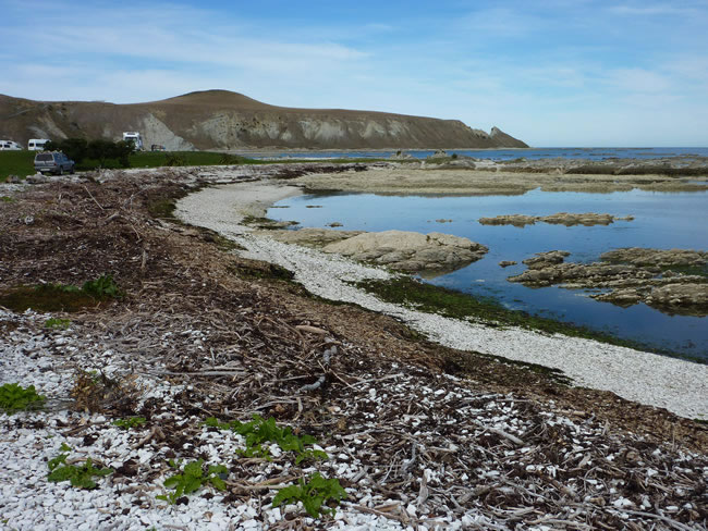 South Island New ZealandAround the other side of the peninsula is another access point for the Kaikora Walk starting from the picnic area at South Bay. The 'beach' here is made up of driftwood and stones. It is great for beachcombing. Previous | Album | Next |