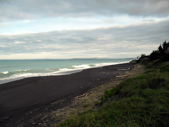 Hawkes Bay to Rotorua, New ZealandHawkes Bay has its share of black sandy beaches and again we saw lots of debris washed up. Hawkes Bay is better known for its wines and we tried quite a few both here in Australia and also on our trip around New Zealand. We reached the coast just north of Napier and chose to continue heading north. We will see Napier another time. Select the photo below to see more of the coastline. Previous | Album | Next |