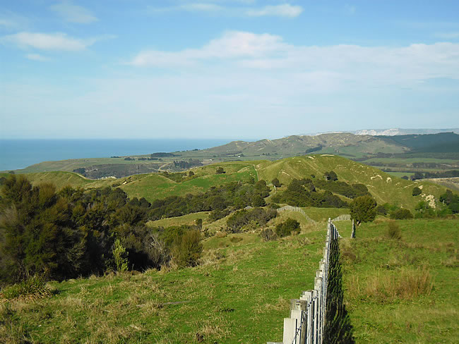 Hawkes Bay to Rotorua, New ZealandThis gives you a good idea of the countryside. Here, we are looking back towards Napier from the Pacific Coast Highway. We continued through Wairoa at the north end of Hawkes Bay and then onto Gisborne. Previous | Album | Next |