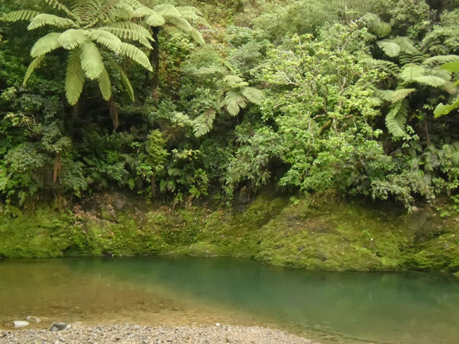 Hawkes Bay to Rotorua, New ZealandWe stopped at one point along the Waioeka Gorge where there was a short walk down to the river. Good to get out and stretch the legs. It was way too serene for Pete. Select the photo below to see how he resolved that problem! Previous | Album | Next |