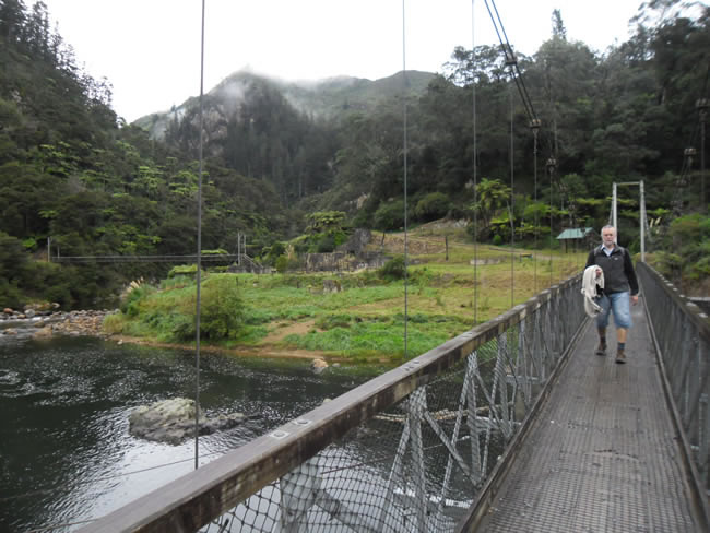 Rotorua to Auckland, New ZealandWe got out of our last set of wet clothes, continued north along highway 2 and we were soon ready for another walk. This time it was the Karangahake Gorge Walk. Our van was starting to look like a laundry with wet clothes hanging up to dry from any spot we could find. Select the photo below to see more of this scenic historic reserve. Previous | Album | Next |