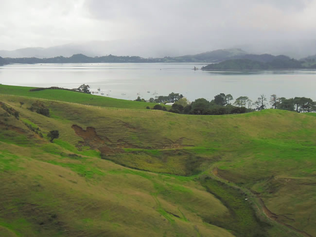 Rotorua to Auckland, New ZealandWe had views across to Manaia Harbour and Hauraki Gulf on our way to the small town of Coromandal. We didn't do a lot of sightseeing around here as it was still raining off and on and very overcast (more for next trip). We stopped at Coromandel to buy some fresh seafood then drove east across the peninsula to Whangapoua Harbour. Select the photo below to see more of the area. Previous | Album | Next |