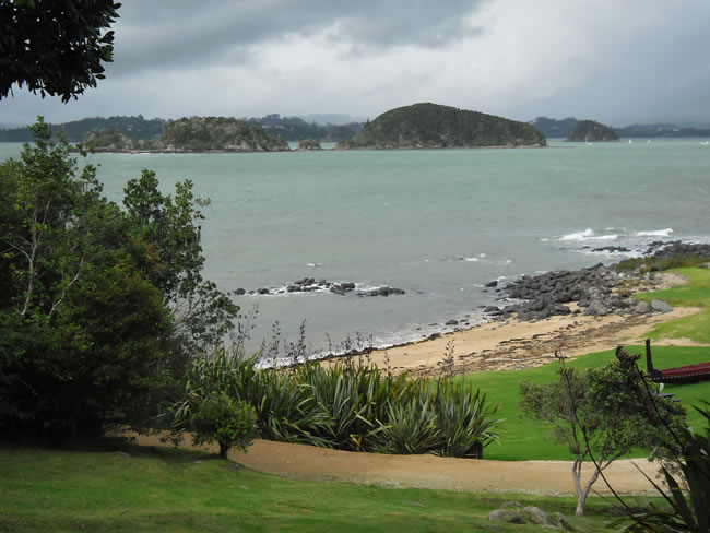 Auckland to Cape Reinga, New ZealandThe Treaty Grounds are part of the 506 hectare Waitangi National Trust estate, which was gifted to the New Zealand nation by Lord and Lady Bledisloe in 1932. Walking around the grounds you get quite good views across the Bay of Islands. Select the photo below to see the colonial mission house and historic flagstaff which marks the place where the Treaty of Waitangi was first signed. Previous | Album | Next |