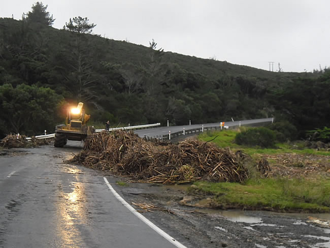 Auckland to Cape Reinga, New ZealandIt had been raining off and on for days but overnight we had an absolute downpour. We were woken up a couple of times with brilliant lightning flashes and wind rocking the campervan. We set off next morning, following the Far North Road, hoping today to make it to the tip of Cape Reinga. The flash flooding had caused quite a bit of damage and we had to stop a few times while roads were cleared of debris. Select the photo below to see more of this area. Previous | Album | Next |