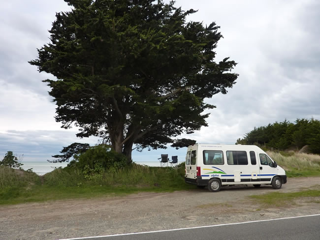 Lake Tekapo, Lake Pukaki to Oamaru and KakanuiAnother camper was set up down the road 500m and this was a quiet secondary road so... we decided it wouldn't be too noisy camped right here on the edge of Lagoon Beach. You couldn't beat the outlook with the sand just 10 steps across this grassy dune. Select the photo to see more of Lagoon Beach. This was our 5th night and we had yet to pay for a campsite and who would when you can get places like this for free? Previous | Album | Next |