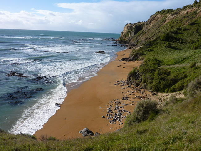 Dunedin to Catlins to BluffWe drove through the small fishing village of Moeraki. It has a long history of Maori occupation, which is represented in the town today by the Kotahitanga Maori Church and a pa site (maori fort) nearby. This small seaport town was the first European settlement in North Otago. We walked up the track, behind the town to the lighthouse. Nearby there was a yellow-eyed penguin sanctuary and a seal colony. We were there at the wrong time of day to see the penguins and had to be satisfied with the hundreds of shags on the rocky cliffs. Previous | Album | Next |
